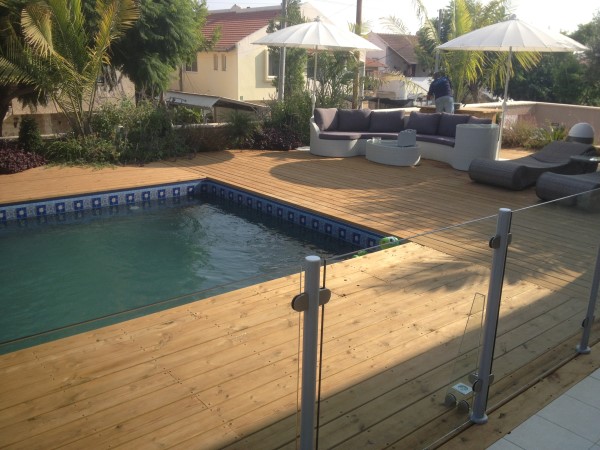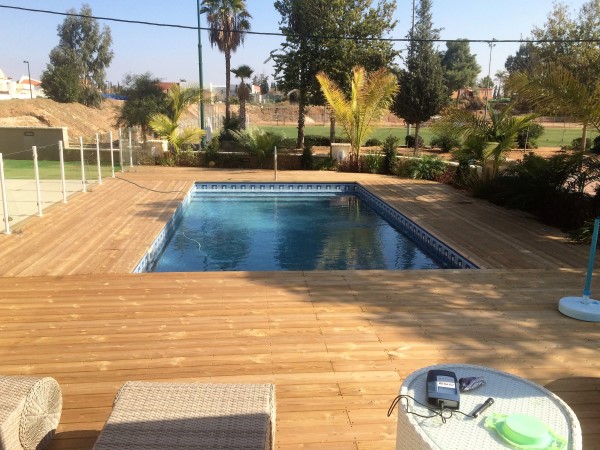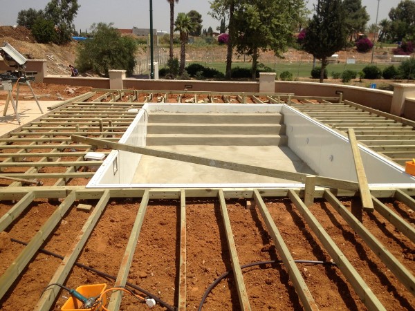 בניית בריכת שחייה מתועשת עם כיסוי חשמלי בטיחותי.